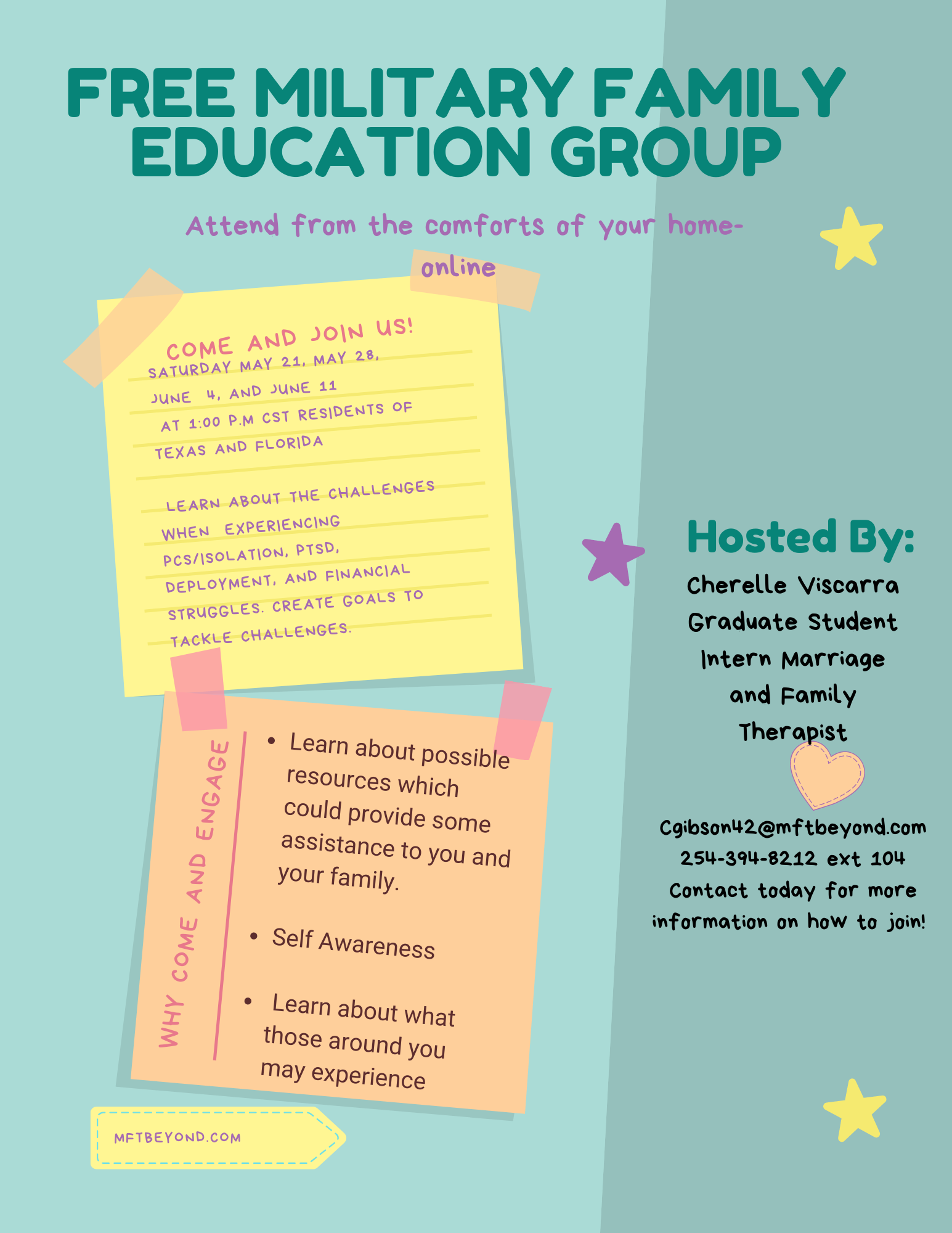 To learn more about this group click “Military Family Education Group“